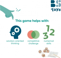 Gracze ćwiczą liczenie, rozpoznawanie wzorów i podejmowanie decyzji przy wyborze najlepszych kombinacji. Wytrzymałe drewniane kości oraz praktyczny bloczek z ołówkiem gwarantują gotowość do gry w każdej chwili – w domu, na działce i w podróży.