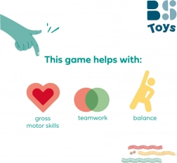 Dzieci trzymają poszczególne elementy i wspólnie prowadzą kulkę tak, aby płynnie przechodziła między segmentami bez upadku. Świetne do gry zespołowej i rozwijania umiejętności społecznych.