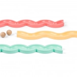 Trzy kolorowe części z krzywoliniowymi żłobkami łatwo łączą się w różne trasy. Zmienna konfiguracja utrzymuje zabawę na wysokim poziomie i rozwija wyobraźnię.