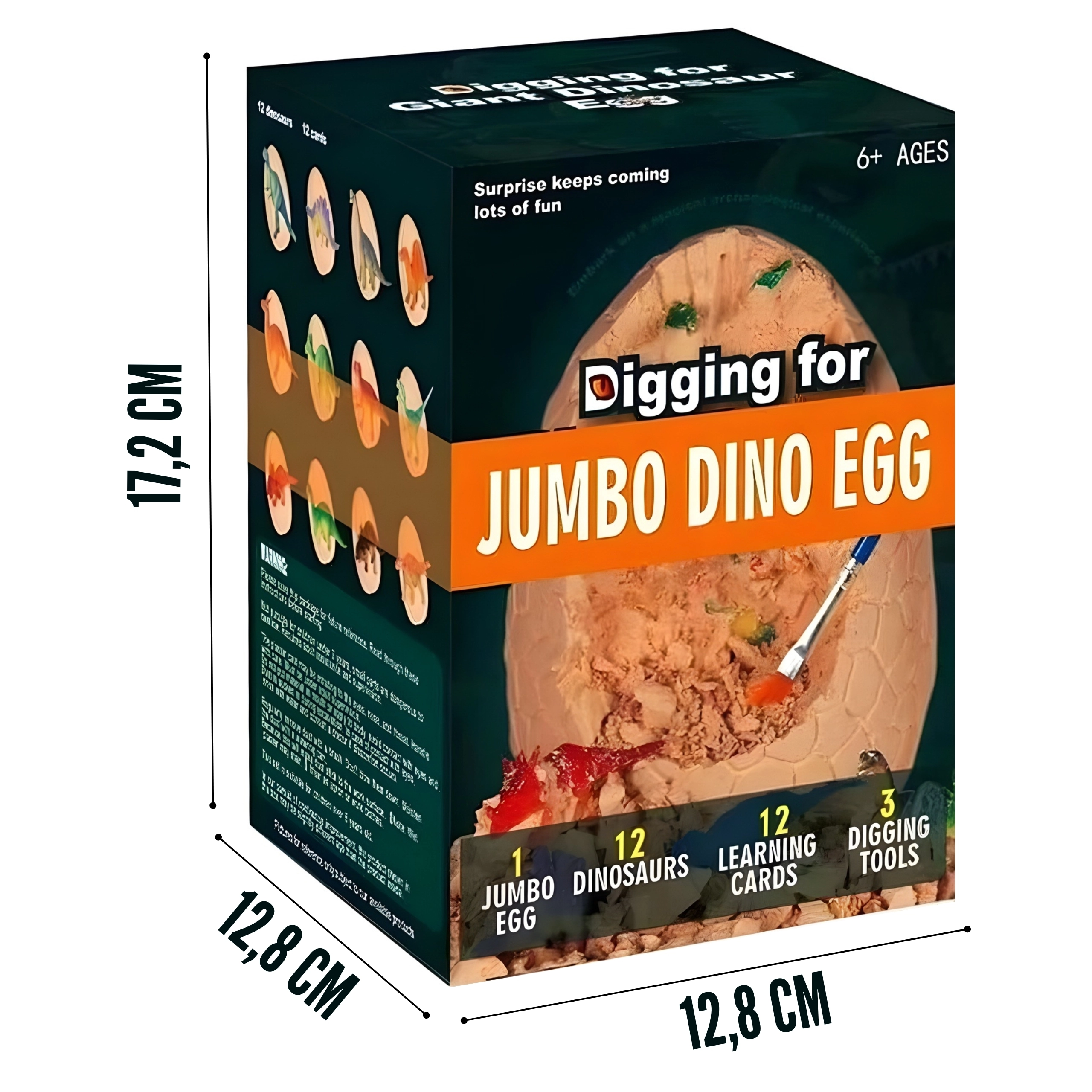 W opakowaniu znajdziesz wszystko, czego potrzeba: mały młoteczek, dłuto i pędzelek do bezpiecznego odkrywania, a także 12 kart z opisem dinozaurów dla łatwiejszej nauki. Świetny pomysł na prezent i aktywność do wspólnej rodzinnej zabawy oraz grania z przyjaciółmi.