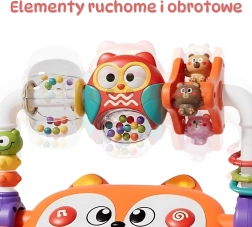 - obrotowa sowa z grzechotkami, figurki zwierzątek, kolorowe kółeczka/kulki