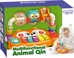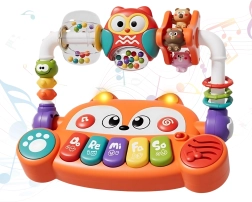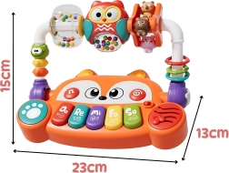 Szukasz zabawki, która zajmie maluszka i jednocześnie wesprze jego rozwój już od pierwszych miesięcy? Interaktywne pianinko marki Woopie w kształcie uroczej liski łączy muzykę, światło, kolory i ruch. Oferuje 5 klawiszy muzycznych (Do, Re, Mi, Fa, So), świetlne efekty LED zsynchronizowane z dźwiękami oraz obrotowe elementy z grzechotkami dla stymulacji zmysłów. Dzięki bezpiecznej konstrukcji z nietoksycznych materiałów i łatwo naciskanym przyciskom jest idealne dla małych rączek i wspiera rozwój sensoryczny, muzyczny i poznawczy.