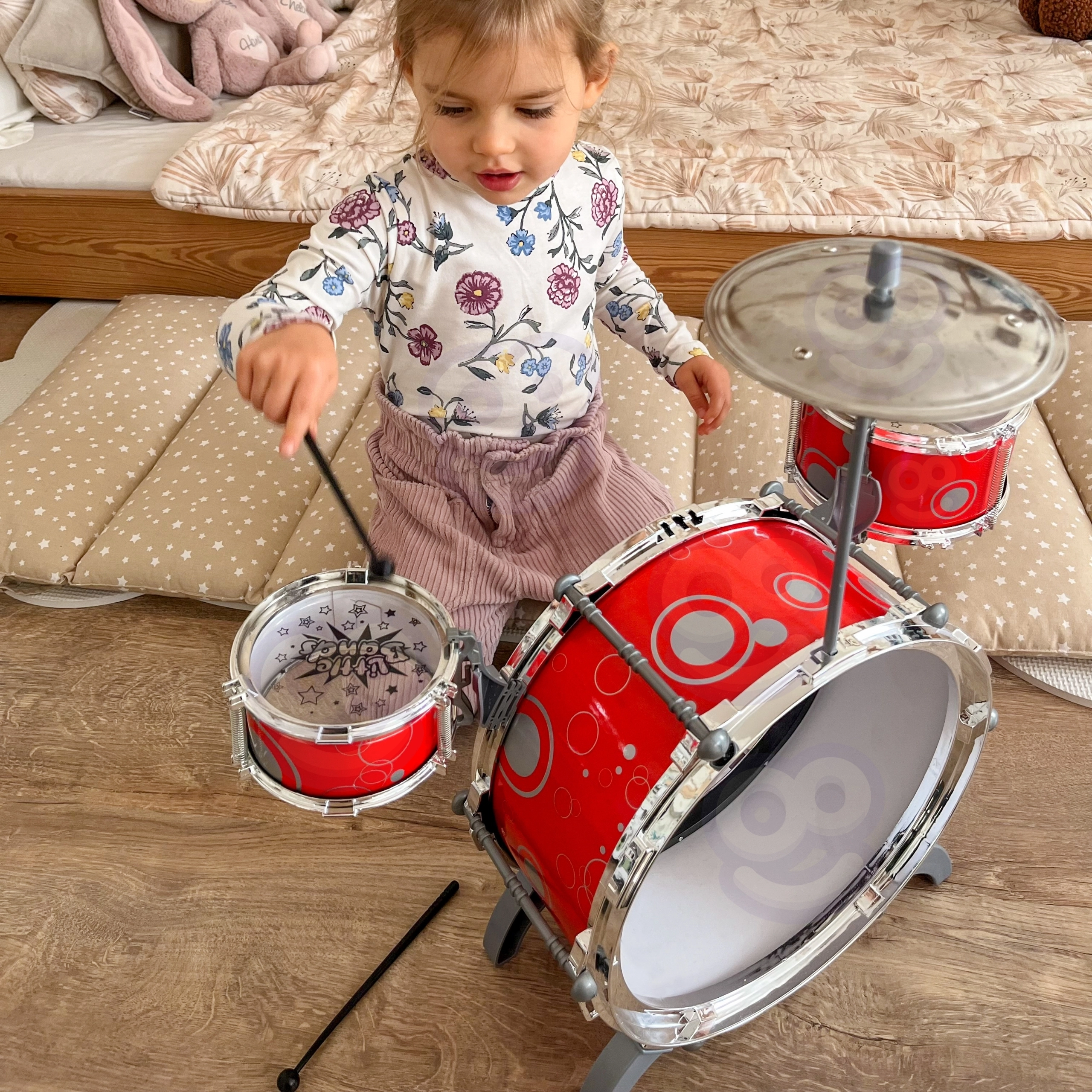 Dziecięcy zestaw perkusyjny WOOPIE to zabawny i bezpieczny sposób, by wprowadzić dzieci w świat muzyki. Kompaktowy set obejmuje centralny bęben z pedałem, boczne tomy, talerz oraz pałeczki – wszystko zaprojektowane z myślą o małych dłoniach i wygodnej grze. Dzięki prostej konstrukcji montażowej jest gotowy do użycia w mgnieniu oka.