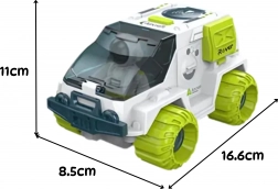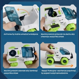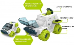 Ten futurystyczny kosmiczny łazik zachwyca białą karoserią z kontrastującymi zielonymi elementami i realistycznymi detalami inspirowanymi pojazdami badawczymi. Przezroczysta, otwierana kabina pozwala wygodnie posadzić astronautę za sterami, a interaktywny radar po naciśnięciu przycisku na dachu automatycznie się wysuwa i po wciśnięciu przedniego zderzaka ponownie się chowa.