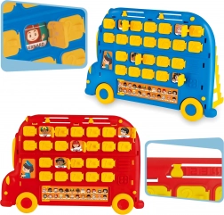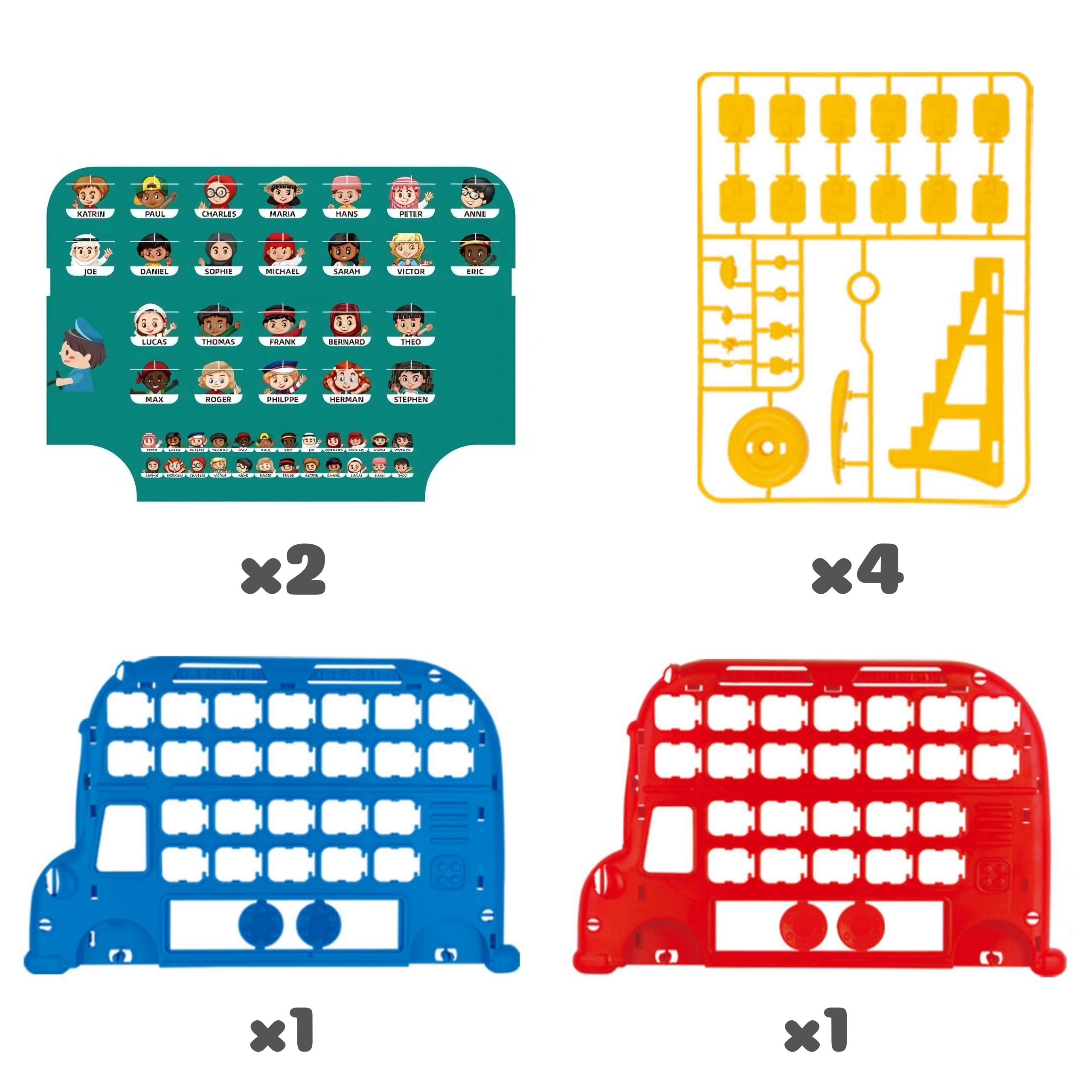 Co znajdziesz w opakowaniu:- 2 tablice do gry w kształcie autobusu (niebieska i czerwona)