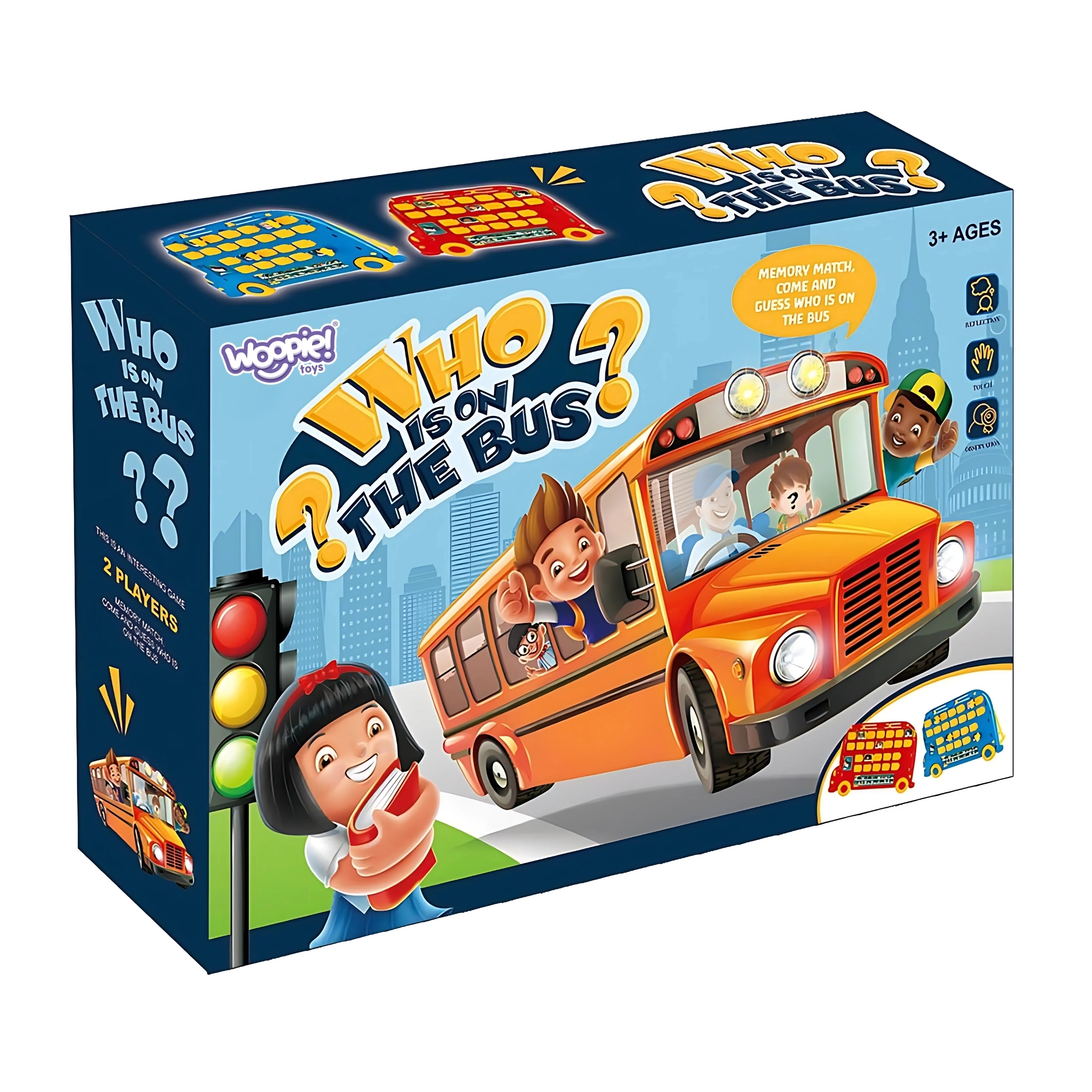 Rodzinna gra Woopie Zgadnij kto przenosi lubianą zasadę „zgadnij, kto to jest” do nowej, atrakcyjnej formy z tablicami w kształcie autobusu szkolnego. Dzieci i dorośli poćwiczą logiczne myślenie, pamięć i uwagę oraz komunikację. Gracze zadają sprytne pytania i eliminują postacie lub zwierzęta, aż odkryją właściwą kartę przeciwnika. Prosta mechanika bez baterii, wytrzymałe wykonanie i kolorowe ilustracje gwarantują zabawę na długie godziny w domu i w podróży.