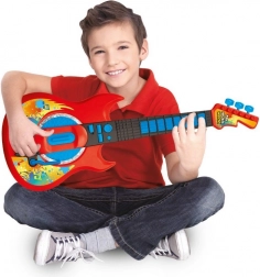 Stylowa dziecięca gitara elektryczna w nowoczesnym czerwonym designie ucieszy małych muzyków od 3. roku życia. Wspiera rozwój motoryki, słuchu muzycznego i poczucia rytmu. Oferuje dwa tryby gry, melodie demo, rączkę efektów (whammy), imitację uderzeń w struny oraz regulację głośności.