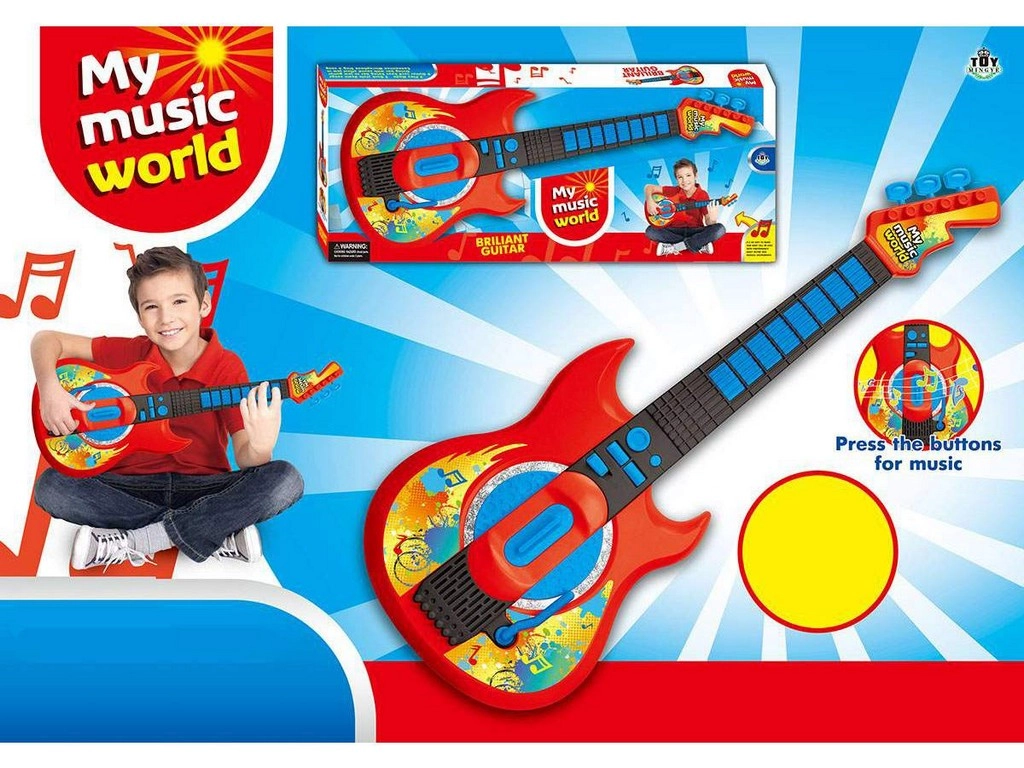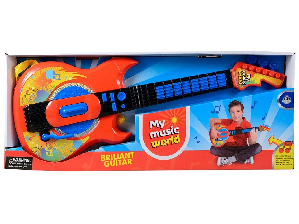 - Dwa tryby gry, melodie demo, imitacja uderzeń w struny, rączka efektów, regulacja głośności
