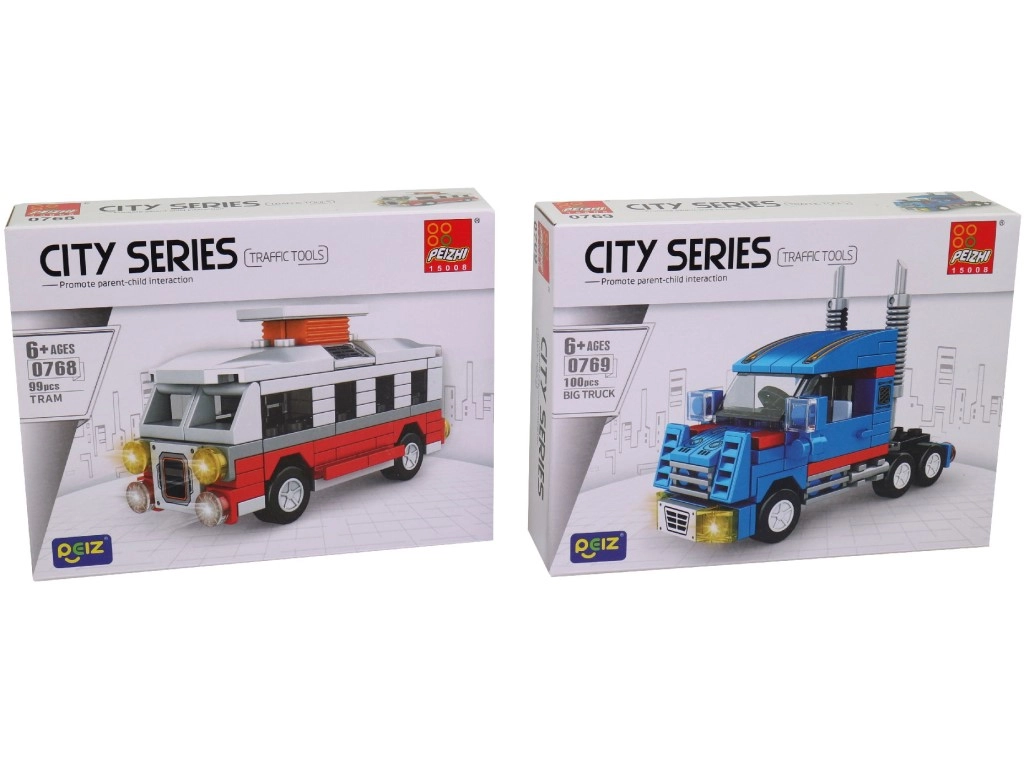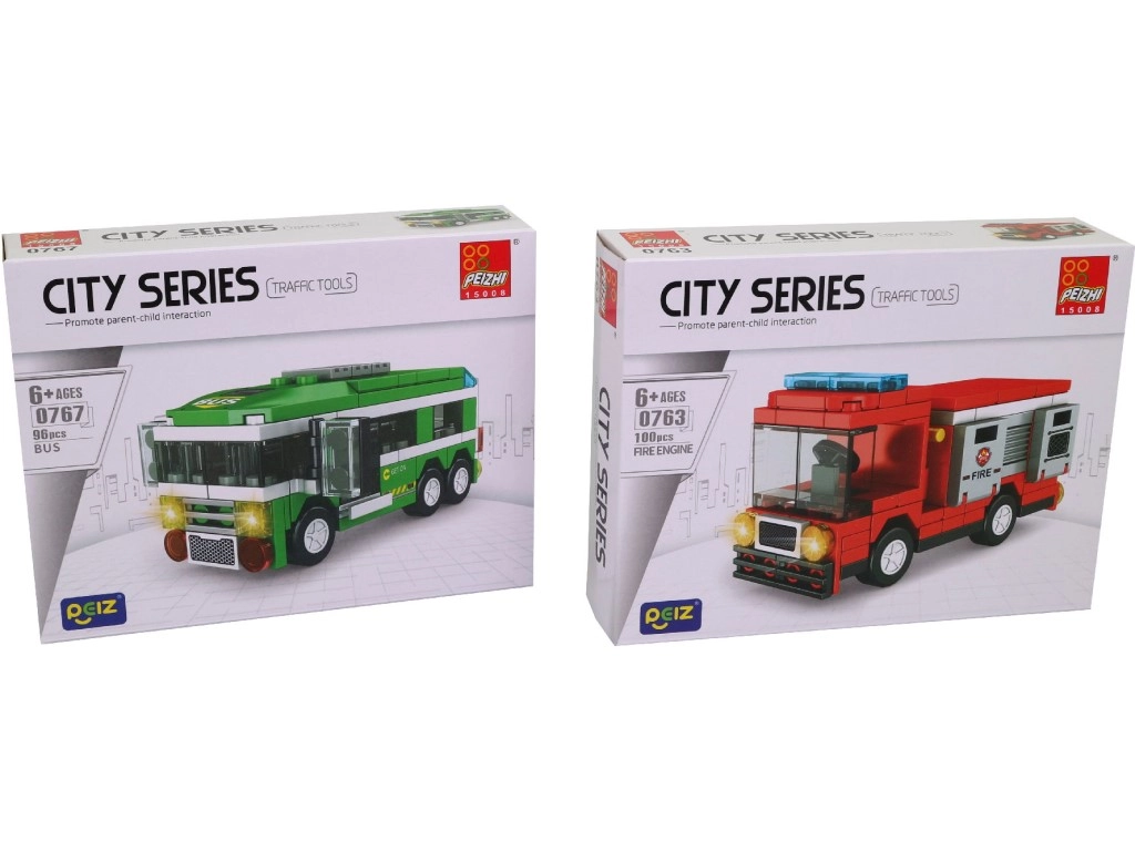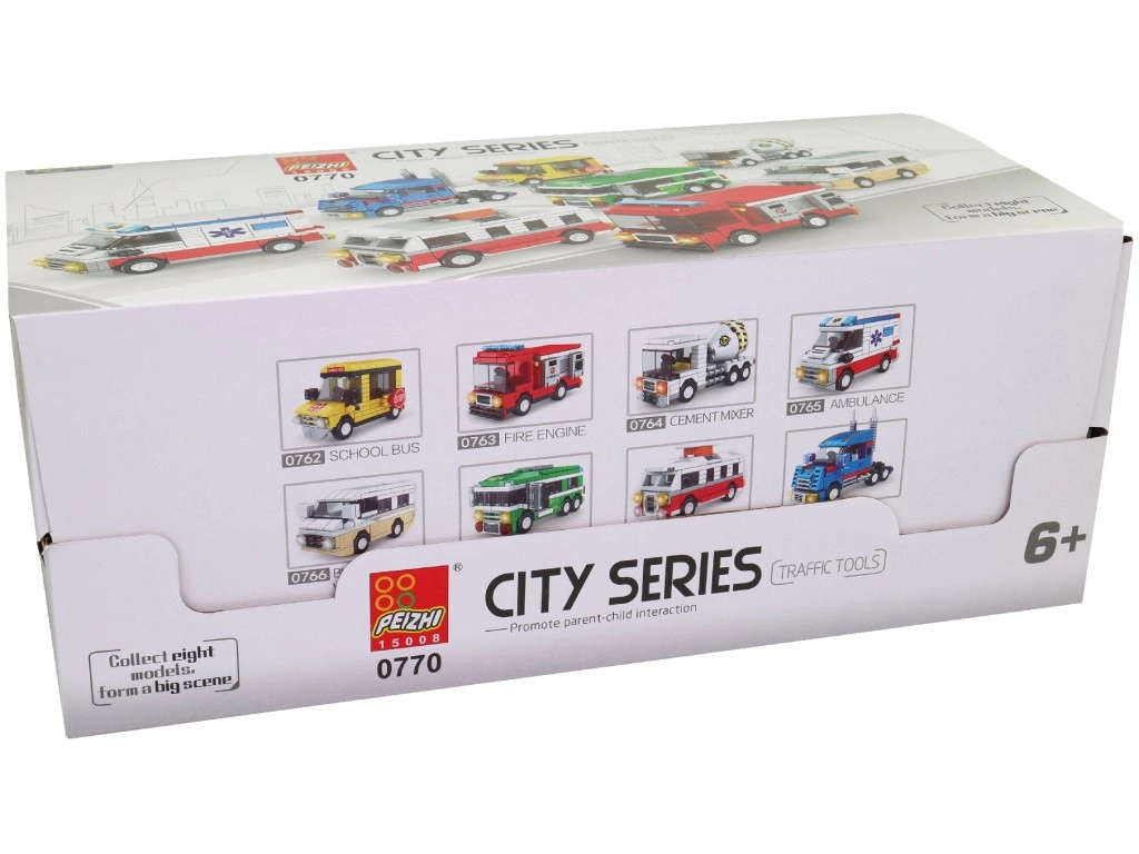 Ten zestaw klocków z serii pojazdów miejskich zapewnia dzieciom godziny twórczej zabawy. W praktycznym display boxie znajduje się 8 osobnych mini zestawów, które po złożeniu tworzą ulubione środki transportu, takie jak autobus, wóz strażacki, karetka czy samochód ciężarowy. Elementy są kompatybilne w obrębie zestawu i zaprojektowane z myślą o łatwym budowaniu.