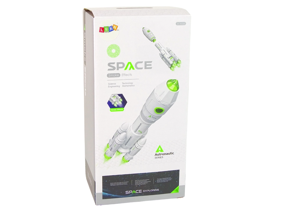 Łatwą obsługę zapewniają przyciski ON/OFF z tyłu rakiety. W zestawie znajduje się figurka astronauty oraz pipeta do uzupełniania wody dla efektu pary. Wystarczy odliczyć 5–4–3–2–1 i start może się rozpocząć!