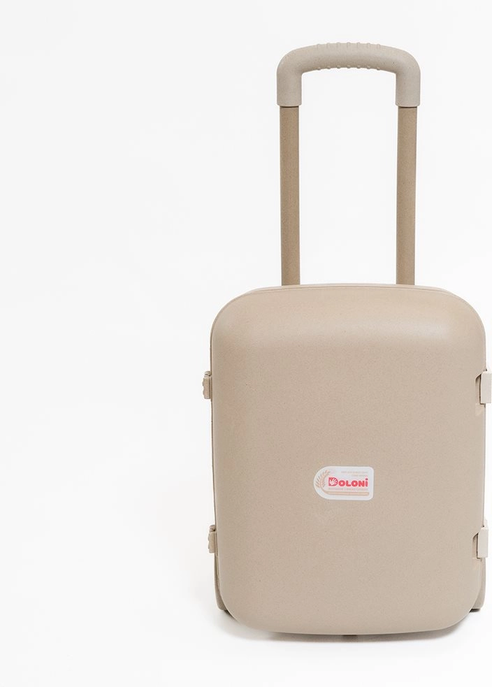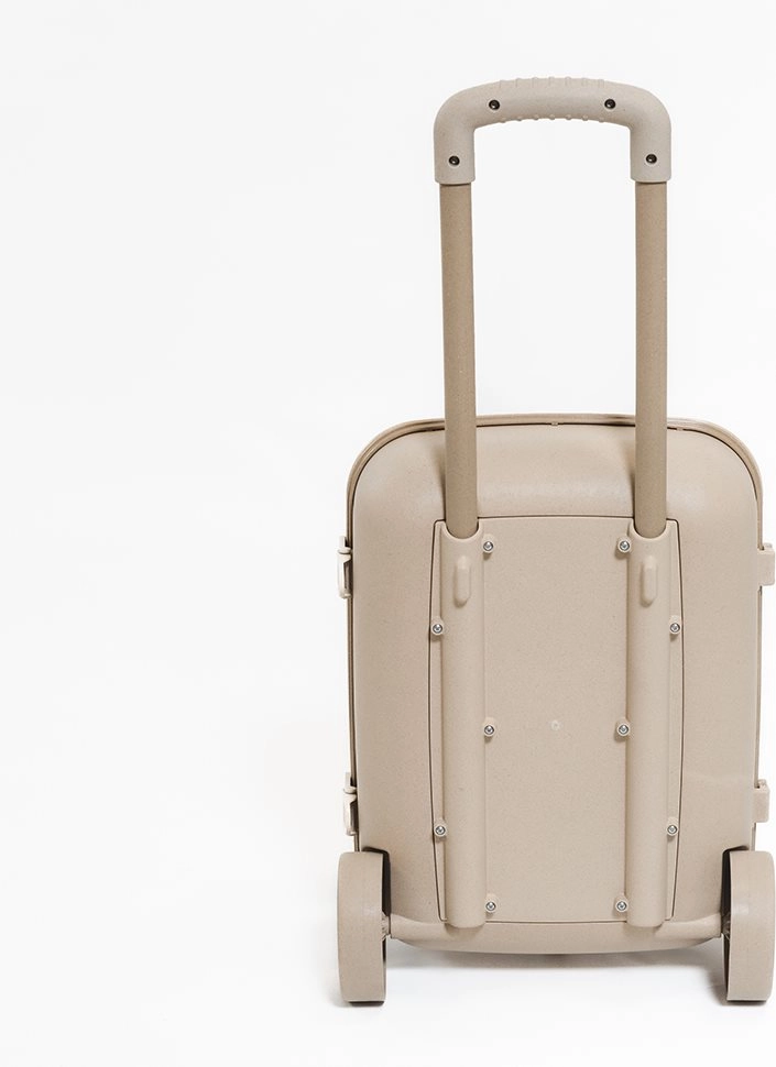 Praktyczna i urocza dziecięca walizka na kółkach z ekologicznego materiału na bazie słomy pszenicznej. Oferuje lekkość, trwałość oraz regulowaną, wysuwaną rączkę dopasowaną do wzrostu dziecka. Dzięki kompaktowym wymiarom i przemyślanej przestrzeni wewnętrznej wygodnie mieszczą się w niej ulubione zabawki i drobiazgi na wyjazd.