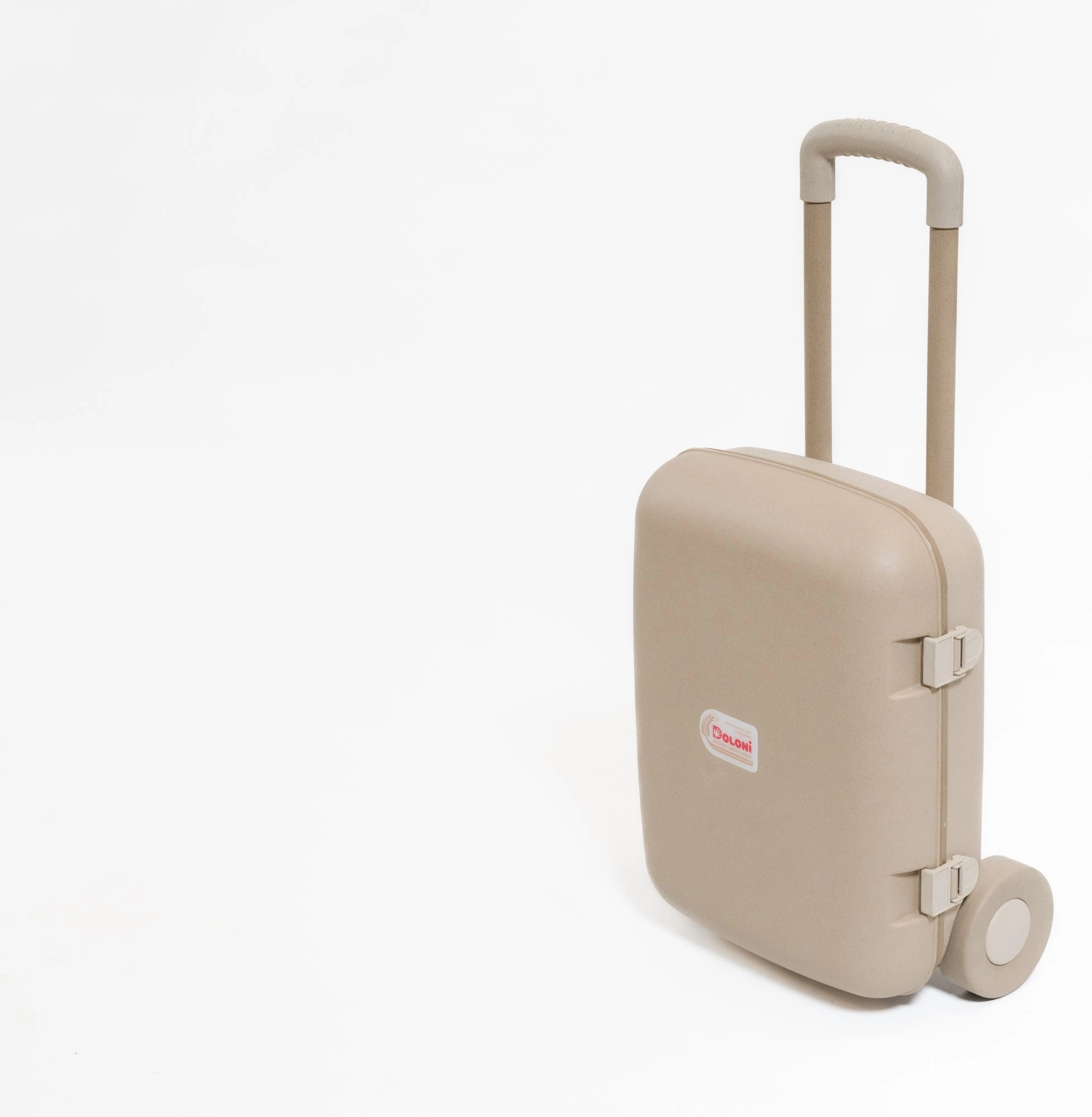 Dziecięca walizka podróżna DOLONI EKO w kolorze beżowym to idealny towarzysz na wakacje, wycieczki i weekendowe nocowania u dziadków. Wykonana z ekologicznego materiału na bazie słomy pszenicznej łączy dbałość o środowisko z wytrzymałością i łatwą pielęgnacją. Dzięki kółkom i teleskopowej rączce dzieciom łatwo się nią manewruje i mogą prowadzić ją samodzielnie.