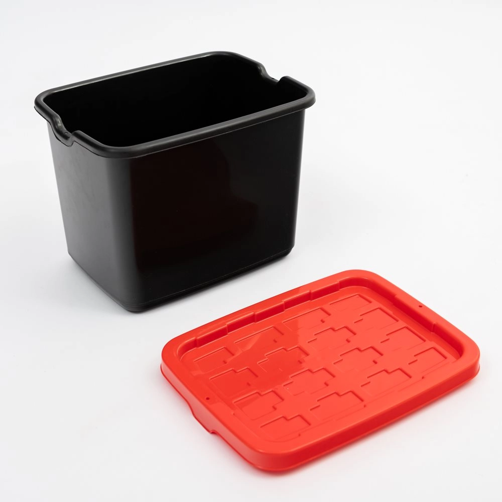 Utrzymaj porządek łatwo i szybko. Ten czarny pojemnik oferuje uniwersalne zastosowanie w każdym domu – od pokoju dziecięcego, przez garderobę, po warsztat. Dzięki zamykanemu wieku chroni przechowywane rzeczy przed kurzem i ułatwia ich bezpieczne przenoszenie.