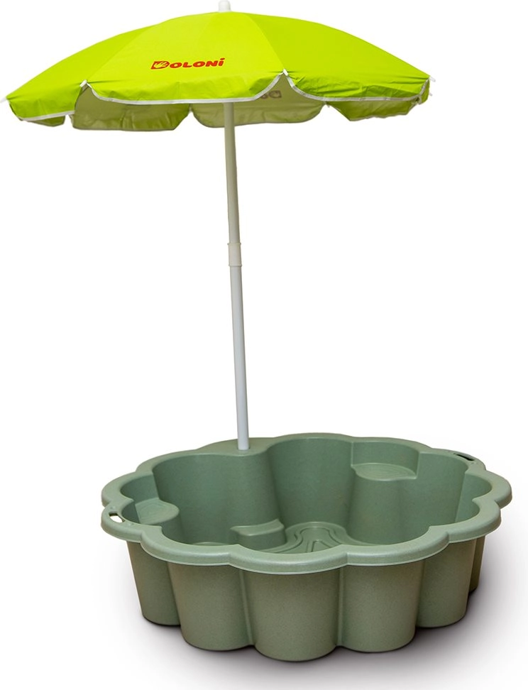 Praktyczny parasol chroni przed bezpośrednim słońcem, a dwa wewnętrzne siedziska oferują wygodne miejsce do siedzenia i zabawy. Lekka, ale stabilna konstrukcja łatwo się czyści i wytrzymuje codzienne dziecięce harce.
