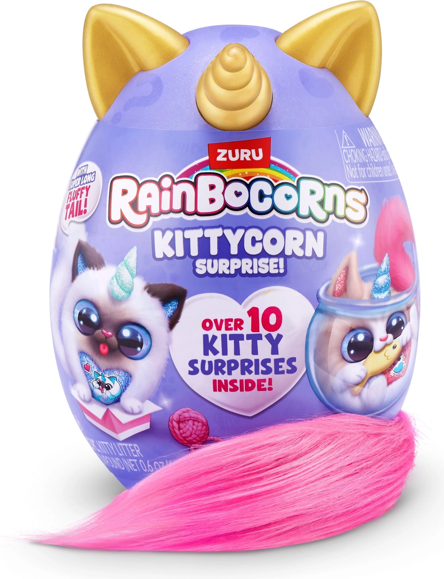 Odkryj magię kolekcjonerskich kotków Rainbocorns! W każdym jajku ukryty jest 1 pluszowy Kittycorn z długim, miękkim ogonem, błyszczącym serduszkiem-niespodzianką oraz ponad 10 kocimi niespodziankami, które zapewnią godziny radości z rozpakowywania.