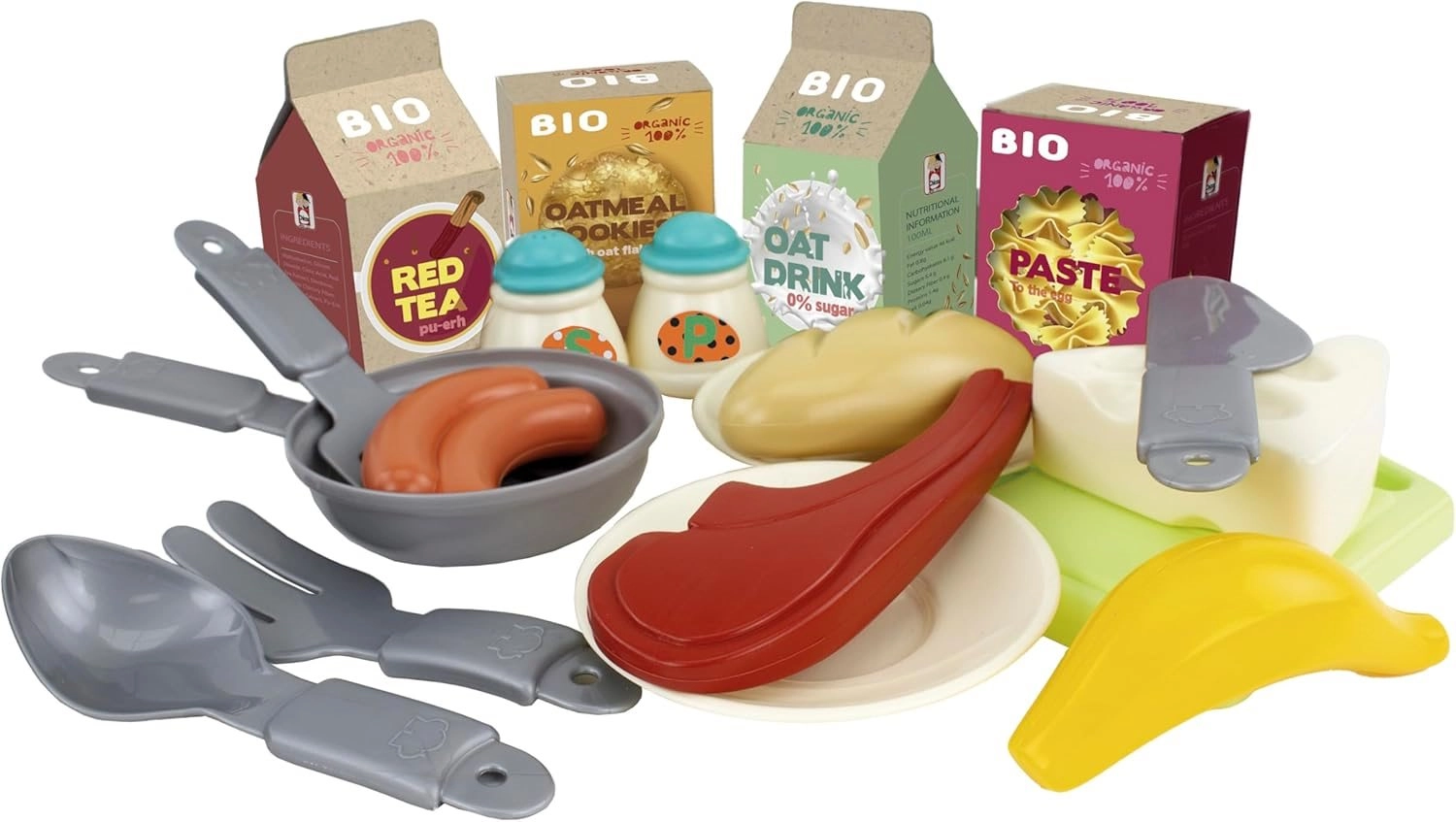 Zestaw zawiera 19 elementów akcesoriów, w tym patelnię, talerze, sztućce oraz „jedzenie”, więc zaraz po rozpakowaniu można zacząć zabawę w szefa kuchni. Zabawa w zawody nigdy się nie nudzi i naturalnie rozwija kreatywność, komunikację i odpowiedzialność.