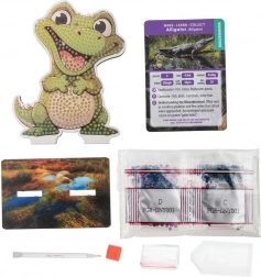Drewniana figurka aligatora ma wypukłą mapę punktów dla wygodnego układania kryształków. Po ukończeniu samodzielnie stoi na podstawce i zdobi stół lub półkę.