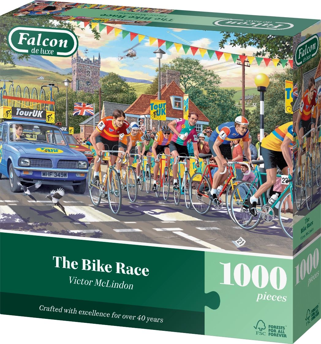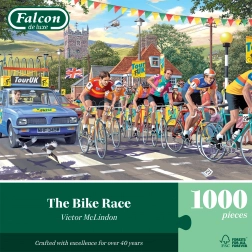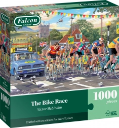 Ciesz się godzinami zabawy z legendarnym autorem JANEM VAN HAASTERENEM i jego chaotycznie zabawną sceną ze świata kolarstwa. To wysokiej jakości puzzle FALCON z 1000 elementów oferują szczegółowe, kolorowe i humorystyczne ilustracje, w których możesz wypatrywać ikonowej rekiniej płetwy, „zbłąkanych” rąk i innych typowych motywów. Po ułożeniu puzzle mają wymiary ok. 68 × 49 cm.