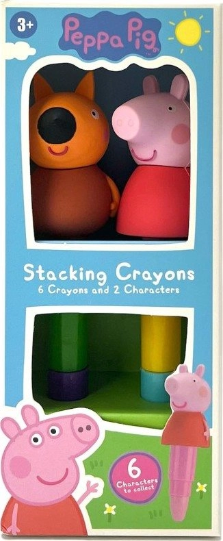 Zabawne i mocne, piętrowe kredki woskowe z postaciami z serialu ŚWINKA PEPPA ucieszą małych twórców. Każda kredka oferuje trzy różne kolory do łatwego rysowania i kolorowania. Ergonomiczny kształt jest idealny dla dziecięcych rąk, a solidne wykonanie gwarantuje trwałość przy codziennym użytkowaniu. Opakowanie zawiera 2 sztuki kredek. Kolorystyka dostarczana jest w mixie w zależności od dostępności magazynowej.