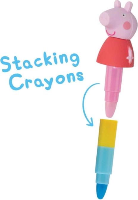 Wspieraj kreatywność dzieci dzięki wesołym, piętrowym kredkom woskowym z motywami ŚWINKI PEPPA. Każda kredka łączy trzy kolory w jednej, dzięki czemu dzieci mogą łatwo zmieniać odcienie podczas rysowania i kolorowania. Dzięki grubszej obudowie kredki dobrze leżą w dłoni i mniej się łamią.