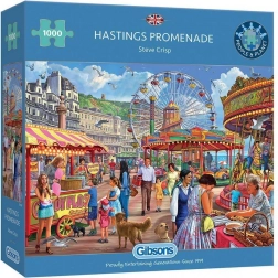 Zrelaksuj się przy wysokiej jakości puzzlach marki GIBSONS z motywem malowniczej promenady w Hastings. Układanka o 1000 elementach oferuje szczegółową ilustrację pełną kolorów i drobnych scenek, które bawią i koją. Ułożone puzzle mają wymiary około 68 × 49 cm i doskonale nadają się do oprawienia w ramę.