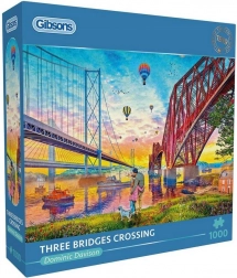 Zrelaksuj się przy układaniu wysokiej jakości puzzli marki Gibsons z motywem Trzy mosty nad rzeką. Zestaw zawiera 1000 elementów, a po ułożeniu tworzy obraz o wymiarach 68 × 49 cm – idealny do oprawienia i wyeksponowania.