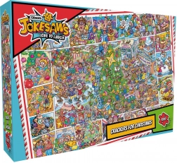 Wejdź do świata świątecznej rozrywki z puzzlami GIBSONS Jokesaws: Crackers for Christmas. Tysiąc precyzyjnie wyciętych elementów tworzy szczegółową ilustrację pełną świątecznych dowcipów, która ucieszy zarówno kolekcjonerów, jak i okazjonalnych układających. Dzięki wygodnemu formatowi po ułożeniu 68 × 49 cm świetnie pasują do większości stołów i podkładek.