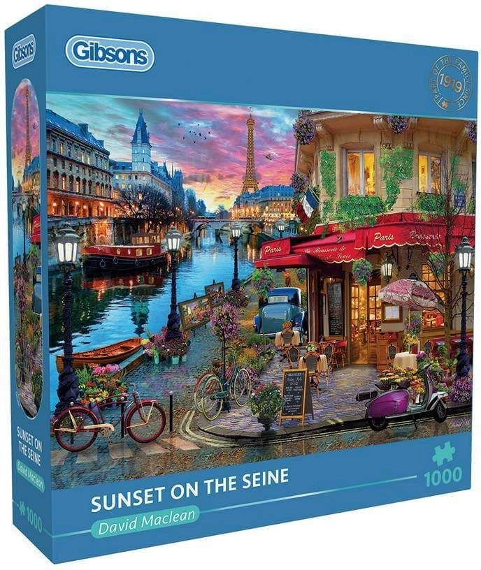 Odkryj urok paryskiego wieczoru z widokiem na Sekwanę o zachodzie słońca. Puzzle GIBSONS słyną z wysokiej jakości kartonu, precyzyjnych wycięć i nasyconych barw, które podkreślają każdy detal. Układanie jest płynne, przyjemne i odpowiednie zarówno dla początkujących, jak i doświadczonych miłośników puzzli.