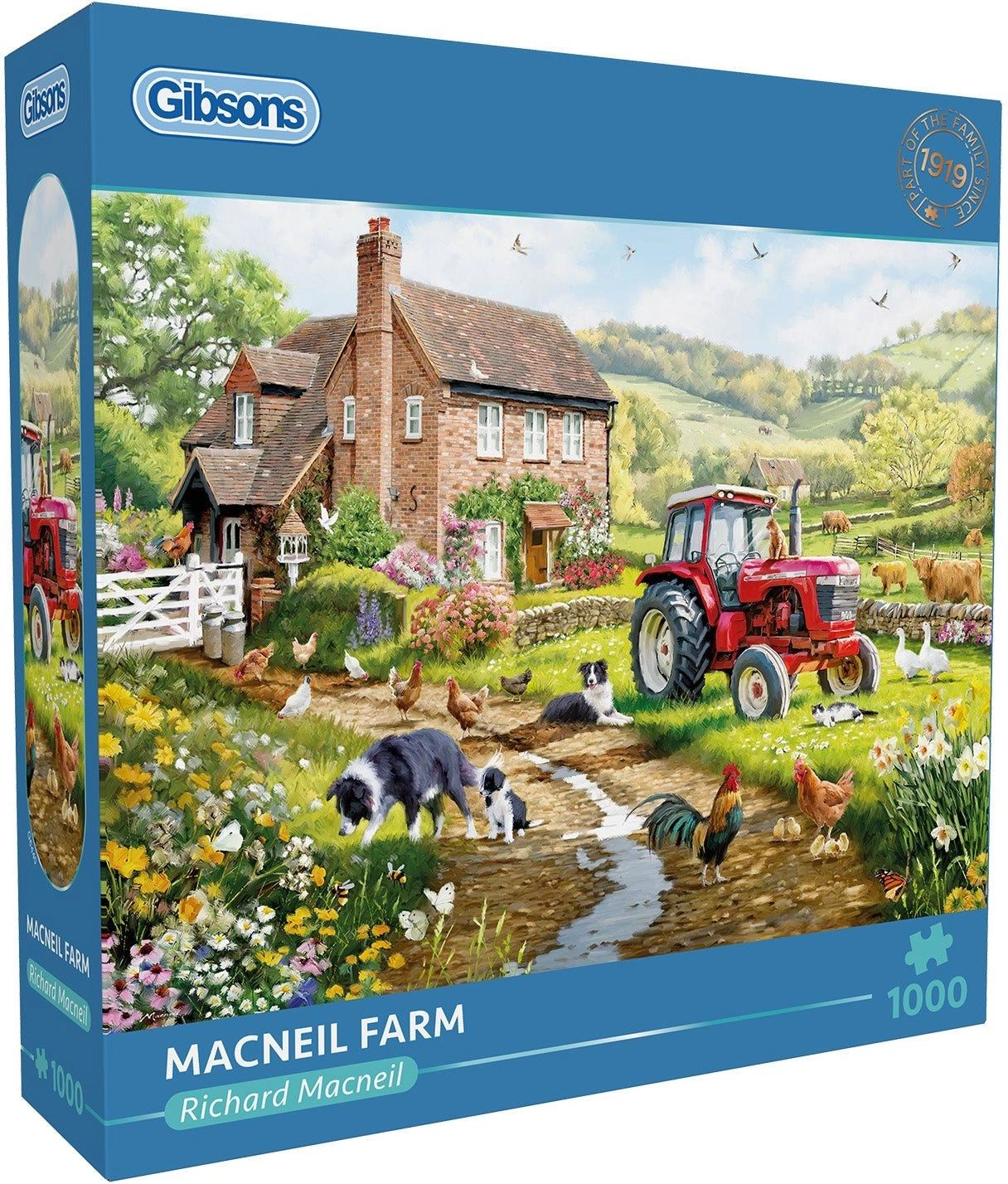 Ciesz się relaksem i zabawą z wysokiej jakości puzzlami marki GIBSONS. Ilustracja „Farma Macneila” oferuje 1000 elementów pełnych detali i kolorów, które urzekną miłośników wiejskich motywów. Po ułożeniu puzzle mają wymiary ok. 68 × 49 cm, idealne do oprawienia lub wyeksponowania.