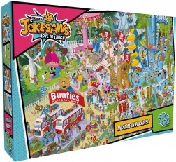 Ciesz się godzinami zabawy z oryginalnymi puzzlami Jokesaws: Trouble in Paradise liczącymi 1000 elementów. Idealne dla miłośników humoru i szczegółowych ilustracji. Po ułożeniu powstaje obraz o wymiarach ok. 68 × 49 cm. Dzięki wysokiej jakości elementom puzzle idealnie do siebie pasują i oferują żywe kolory, ostre detale oraz długą trwałość.