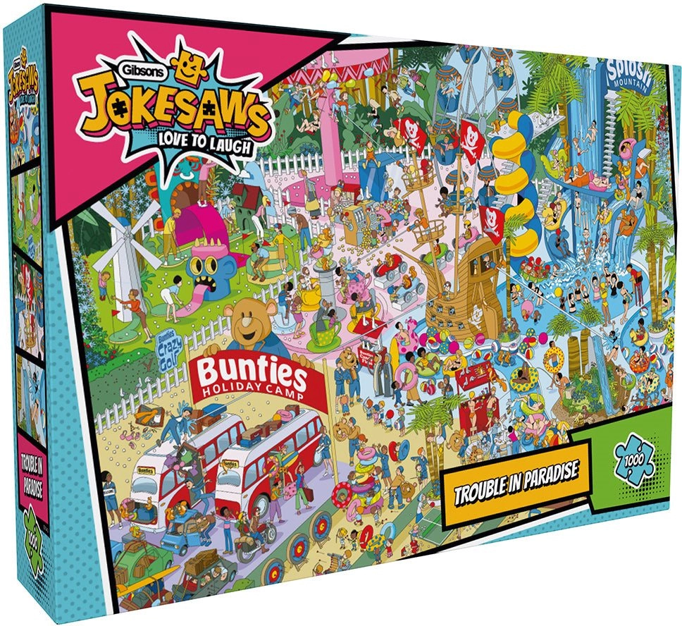 Szukasz puzzli, które Cię rozbawią, a jednocześnie sprawdzą Twoje umiejętności układania? Jokesaws: Trouble in Paradise prezentują humorystyczną scenę pełną drobnych gagów i detali, które z przyjemnością będziesz odkrywać. Dzięki 1000 elementom to idealne wyzwanie dla zaawansowanych układaczy i na rodzinne popołudnie.