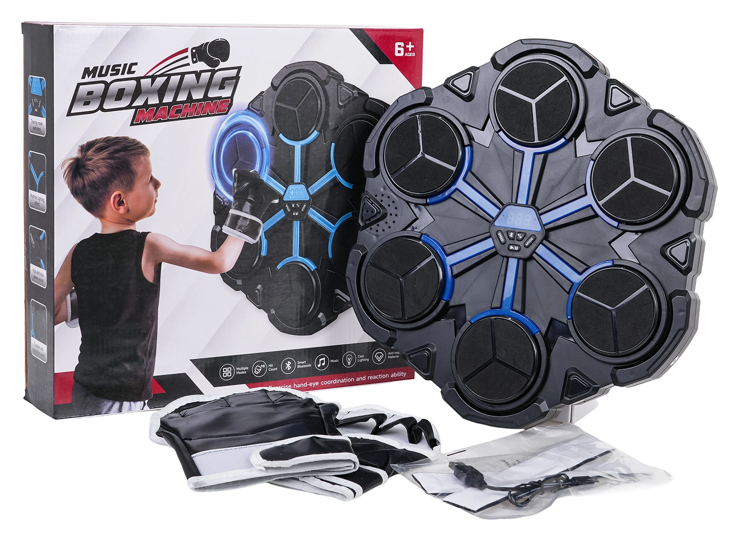 Urządzenie oferuje 9 prędkości i 3 tryby gry – od uderzenia w pojedynczy cel, przez jednoczesne podświetlenie wielu celów, aż po tryb dowolny. Wytrzymała konstrukcja jest zaprojektowana z myślą o dzieciach, a w zestawie znajdują się także rękawice ochronne. Zasilanie zapewnia ładowany akumulator 3,7 V (w komplecie), ładowanie przez USB.