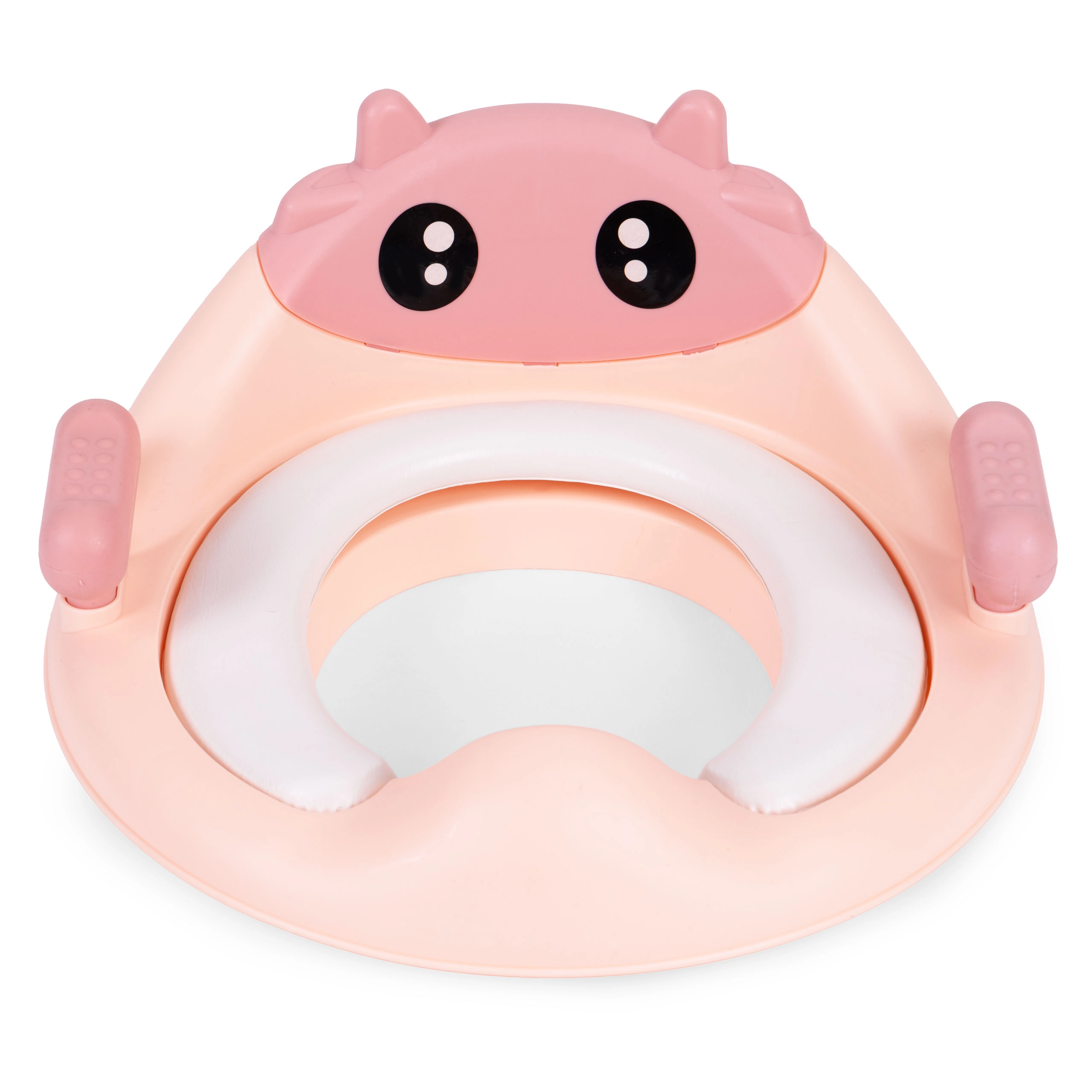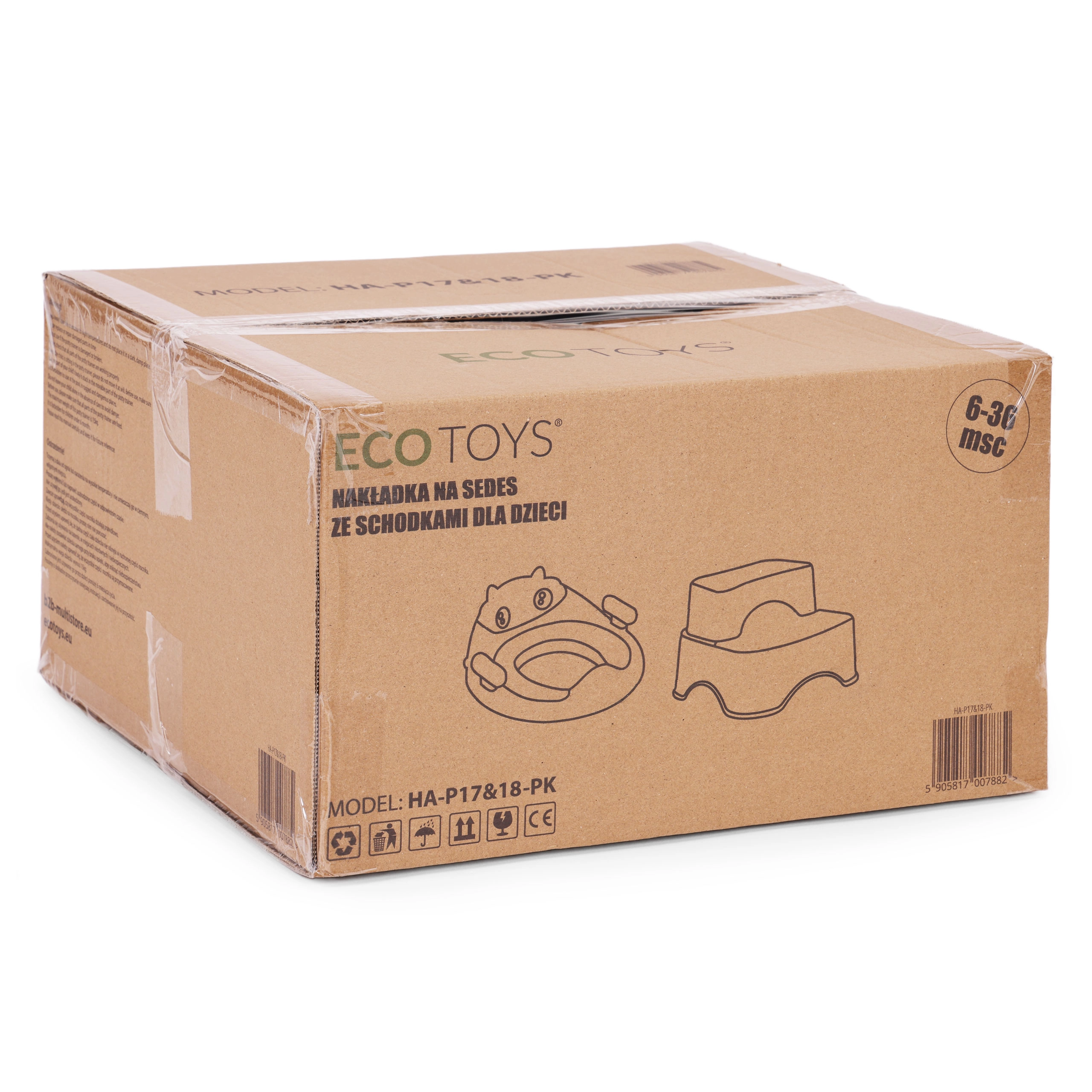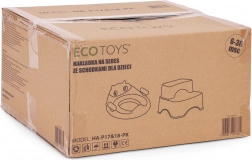Zapewnij dziecku pewność i komfort podczas przechodzenia z pieluch na toaletę. Różowe siedzisko WC ECOTOYS z miękką „poduszką” dzięki ergonomicznemu kształtowi i bocznym uchwytom stabilnie osadza się na standardowej misie, zmniejsza otwór i zapewnia pewne podparcie. Dwupoziomowe schodki z powłoką antypoślizgową pomagają dzieciom łatwo i bezpiecznie wejść.