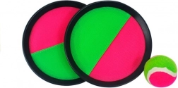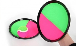 Powierzchnia velcro w neonowej zieleni i różu pewnie trzyma piłeczkę, dzięki czemu z zabawy cieszyć się mogą również młodsze dzieci i początkujący.