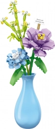 Ten dekoracyjny zestaw łączy kreatywną zabawę z długotrwałym efektem – bukiet z klocków nigdy nie zwiędnie i będzie zdobił wnętrze przez cały rok. Pastelowe kwiaty w odcieniach fioletu, niebieskiego i zieleni uzupełnia stylowy niebieski wazon, który podkreśli wygląd każdego pomieszczenia.
