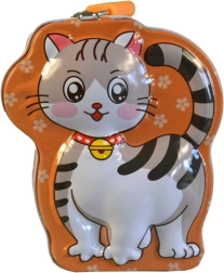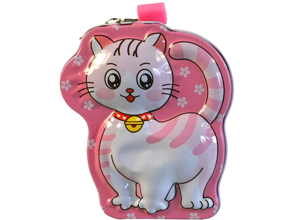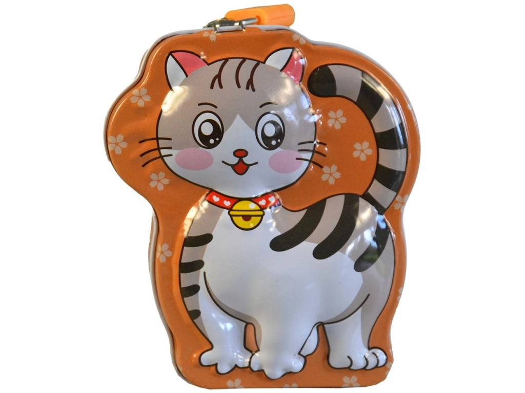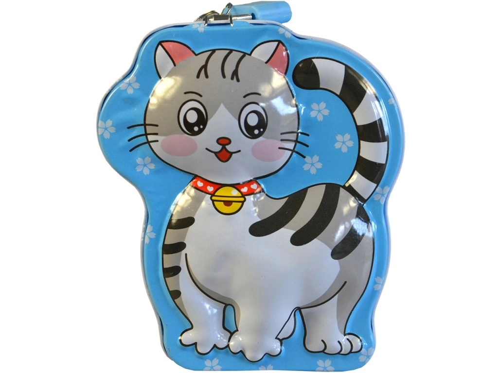 Urocza metalowa skarbonka w kształcie kota ucieszy dzieci i miłośników motywów zwierzęcych. Dzięki kompaktowym wymiarom zmieści się na każdym biurku czy półce i łatwo ją przenosić. Wytrzymała metalowa konstrukcja, bezpieczne przechowywanie monet oraz zabawny design sprawiają, że ta kocia skarbonka to idealny prezent dla dzieci od 3 lat.