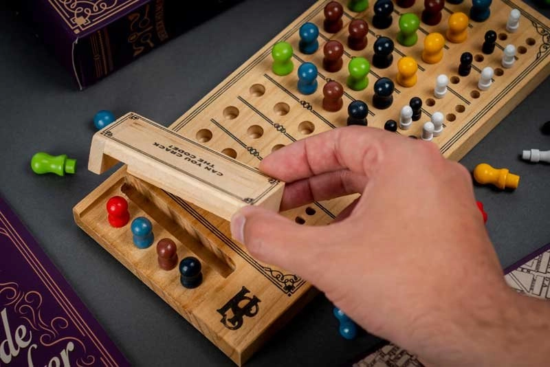 - Hojne wyposażenie – 120 kolorowych kołeczków i 40 kołeczków oceniających na niezliczone rozgrywki.