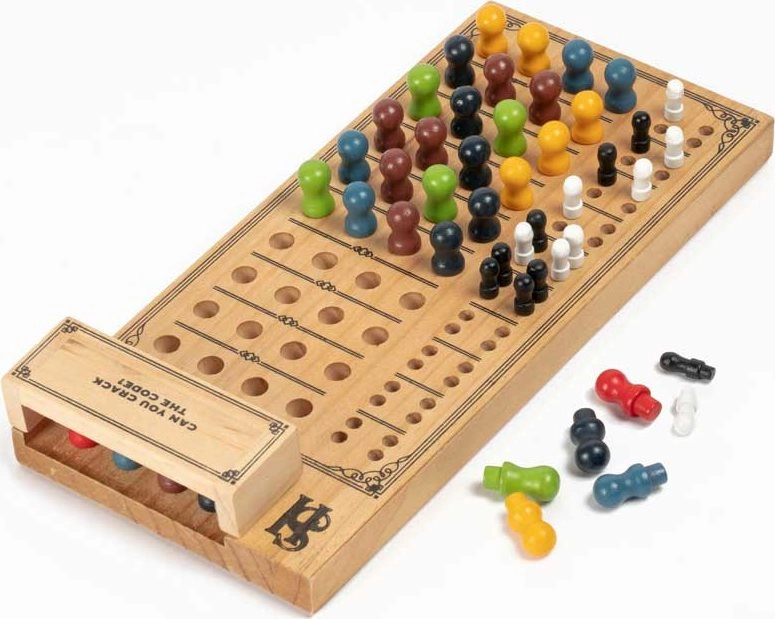 Legendarny łamigłówkowy Mastermind w eleganckim drewnianym wydaniu dostarcza sprytnych pojedynków jeden na jednego. Jeden gracz potajemnie wybiera kombinację, drugi stara się ją odkryć w maksymalnie dziesięciu próbach z pomocą białych i czarnych kołeczków oceniających. Kombinuj, dedukuj i przechytrz przeciwnika niczym SHERLOCK HOLMES swojego rywala.