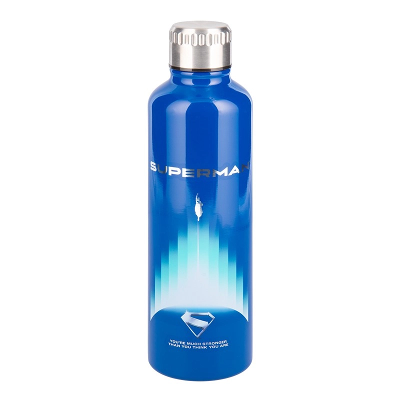 Stylowa butelka ze stali nierdzewnej z motywem SUPERMAN o pojemności 500 ml jest idealna w podróż, do szkoły i do pracy. Wytrzymałe wykonanie ze stali nierdzewnej dłużej utrzymuje świeżość napoju, a dzięki kompaktowym rozmiarom z łatwością mieści się w plecaku. Nie nadaje się do zmywarki.