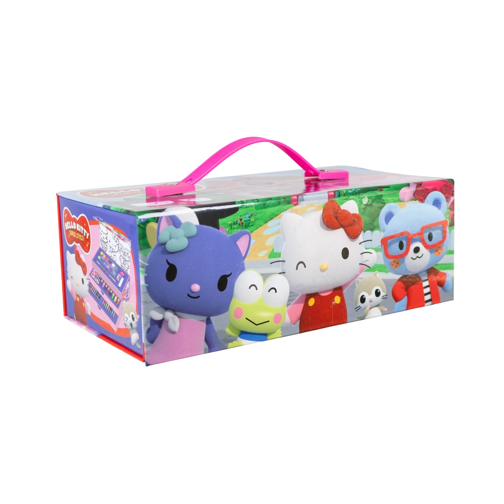 Odkryj uroczy i praktyczny kreatywny box HELLO KITTY, wypełniony wszystkim, czego potrzebują dzieci i początkujący twórcy. Trzypoziomowa konstrukcja oferuje bogaty zestaw artykułów plastycznych do rysowania, malowania i pisania – od farb akwarelowych po kredki. Świetny wybór do domowego tworzenia, do szkoły i w podróż.