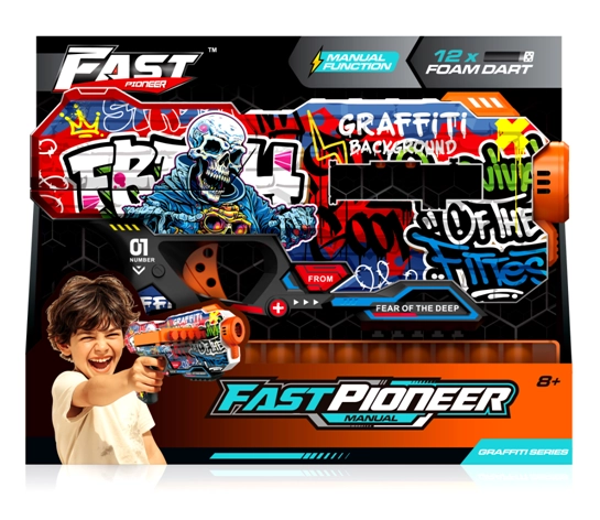 Manualny pistolet Fast Pioneer zapewnia niezawodną i bezpieczną, dynamiczną rozrywkę dla dzieci i początkujących entuzjastów. Dzięki mechanizmowi naciągowemu nie wymaga baterii, więc jest zawsze gotowy do akcji. Piankowe naboje są delikatne dla mebli i bezpieczne podczas zabawy z przyjaciółmi.