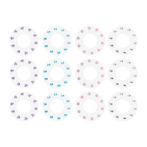 W opakowaniu znajdziesz 180 akrylowych kryształków w odcieniach różu, fioletu, niebieskiego i srebra oraz w popularnych kształtach, takich jak serduszka, gwiazdki, kółka i diamenty. Bezpieczne wykonanie bez ostrych krawędzi jest delikatne dla włosów i tkanin oraz spełnia normy CE / EN 71.