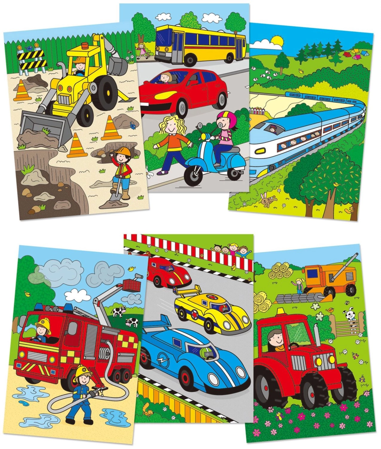 - 6 motywów samochodów – atrakcyjne ilustracje dla małych miłośników pojazdów