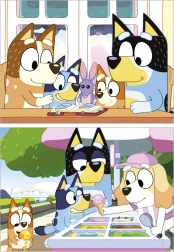 Zabawne puzzle dla dzieci z motywami BLUEY w praktycznej walizeczce. Zestaw zawiera 2 układanki o tym samym formacie i liczbie elementów, idealne dla maluchów dzięki dużym elementom ułatwiającym manipulację. Wyraziste kolory i atrakcyjne motywy przyciągają uwagę od pierwszego spojrzenia.