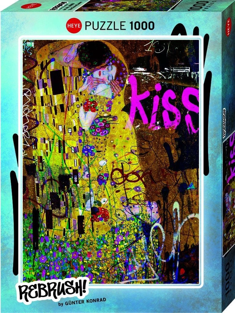 Zrelaksuj się przy układaniu stylowego obrazu z motywem „Pocałunek” z serii Rebrush! marki HEYE. Wysokiej jakości karton, precyzyjny wykrojnik i 1000 elementów dla świetnego wyzwania. Idealne dla miłośników sztuki i zapalonych miłośników puzzli.