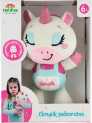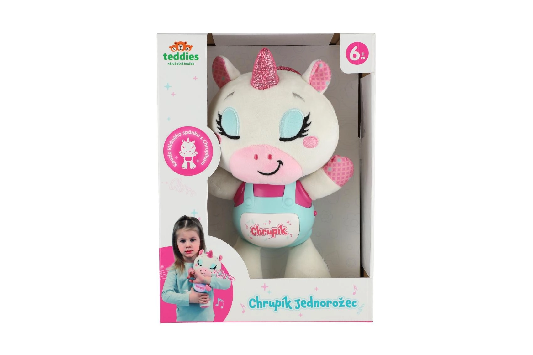 Urocza przytulanka–usypianka jednorożec Chrupík łączy mięciutki plusz z kojącym światłem i delikatnymi melodiami, aby pomóc dzieciom spokojnie zasnąć. Dzięki zasilaniu bateryjnemu idealnie sprawdzi się w łóżeczku, wózku i w podróży, odpowiednia już od 6 miesięcy.
