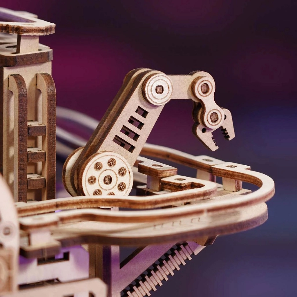 Model łączy drewno, metal i plastik dla niezawodnego działania mechanicznego i dynamicznej estetyki. Zestaw jest idealny na wspólne chwile z rodziną i przyjaciółmi, rozwija małą motorykę, myślenie logiczne i cierpliwość.