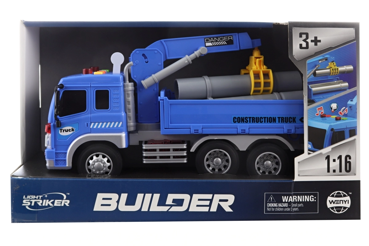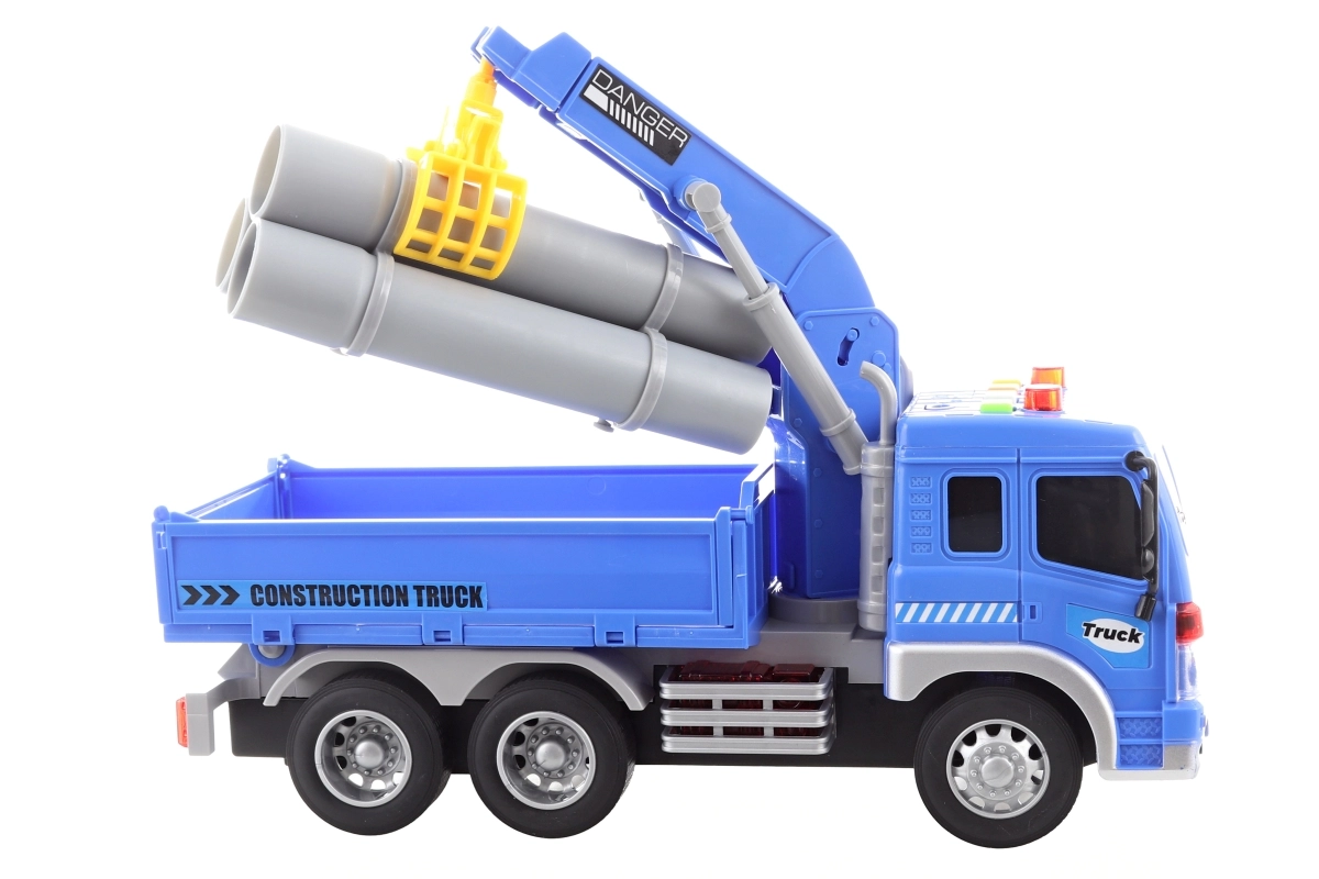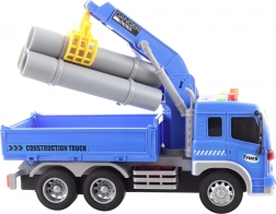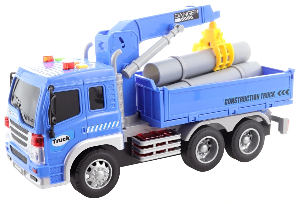 Ten samochód budowlany na baterie ucieszy małych miłośników techniki. Dzięki napędowi bezwładnościowemu po naciągnięciu łatwo rusza, a cztery przyciski na dachu uruchamiają atrakcyjne dźwięki, które potęgują wrażenia z zabawy. Auto jest wykonane z wytrzymałego plastiku i jest gotowe do użycia od razu po wyjęciu z pudełka – baterie są dołączone.