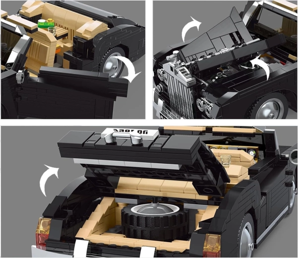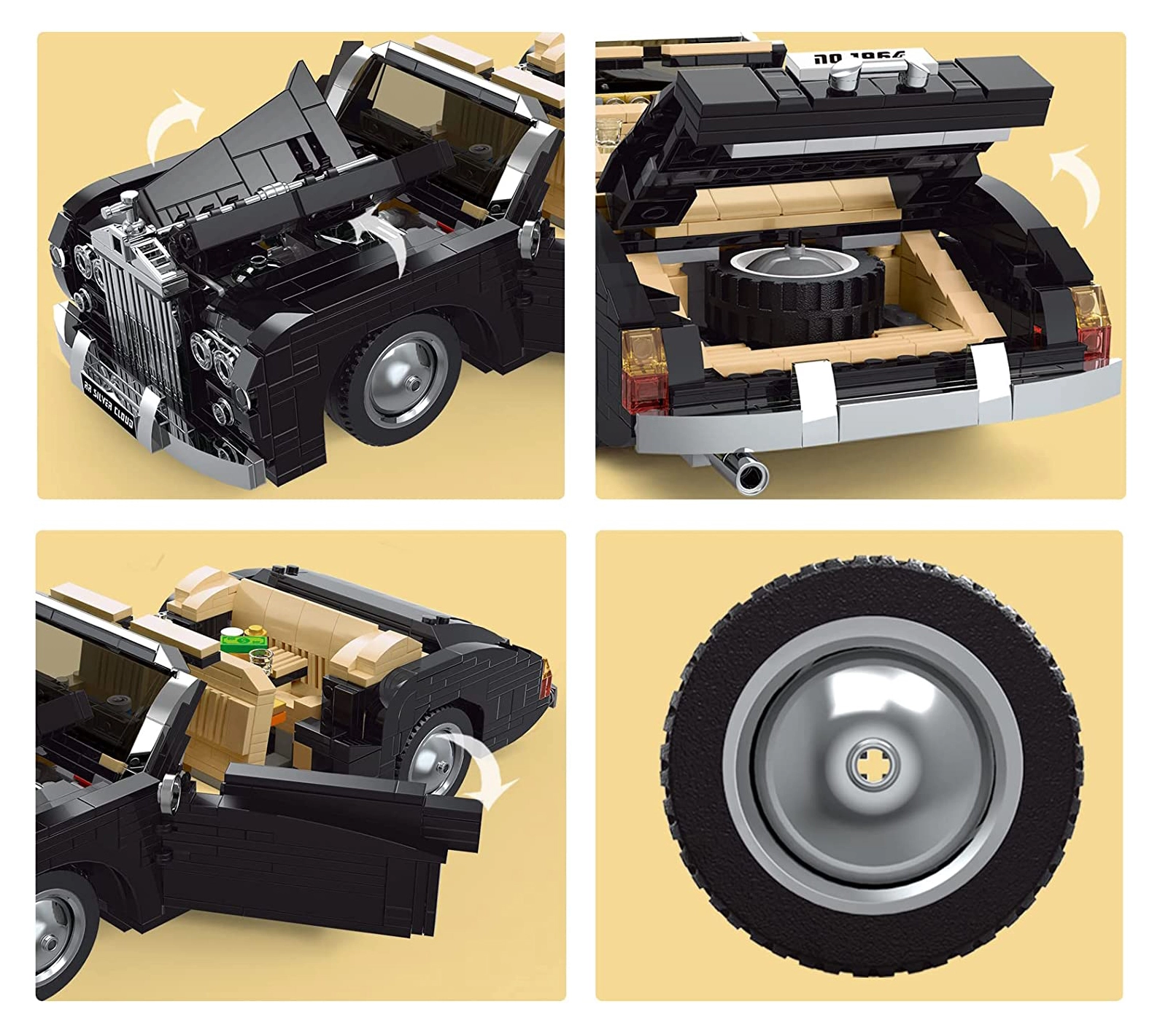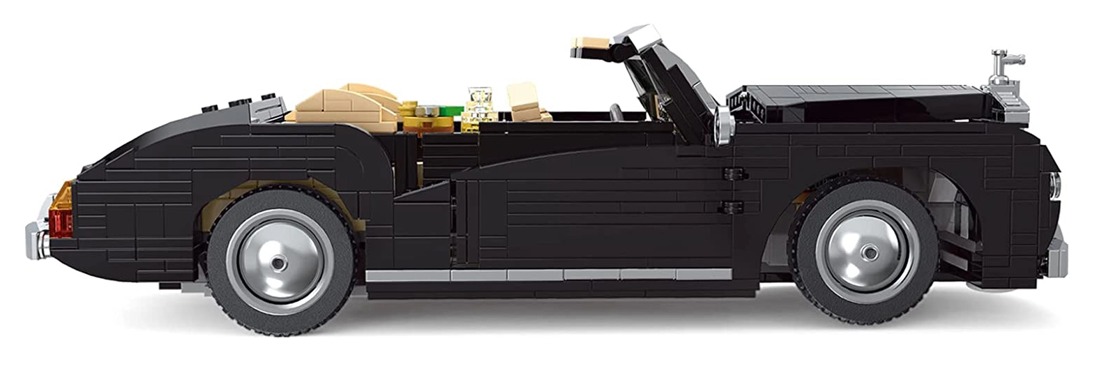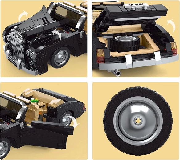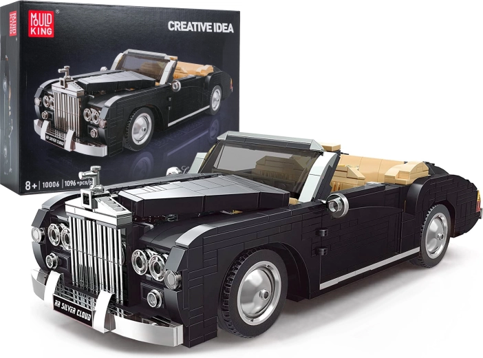 Ten wyrafinowany model klasycznego kabrioletu wyróżnia się chromowanymi detalami, autentycznym wnętrzem i precyzyjnie ukształtowaną karoserią. Zestaw oferuje świetne wrażenia z budowania i ekspozycji – pojazd można toczyć na kołach, otwierać drzwi, maskę i bagażnik oraz podziwiać przemyślane rozwiązania kokpitu.