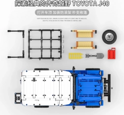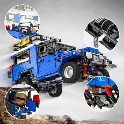 Duży zestaw klocków terenowego auta w skali 1:12 dla dzieci od 8 lat oferuje 2101 elementów na długie godziny zabawy. Model w niebieskim kolorze zachwyca szczegółowym wykonaniem oraz funkcjami, takimi jak otwierane drzwi, maska i bagażnik. Nie brakuje gumowych opon i solidnej, wytrzymałej konstrukcji.